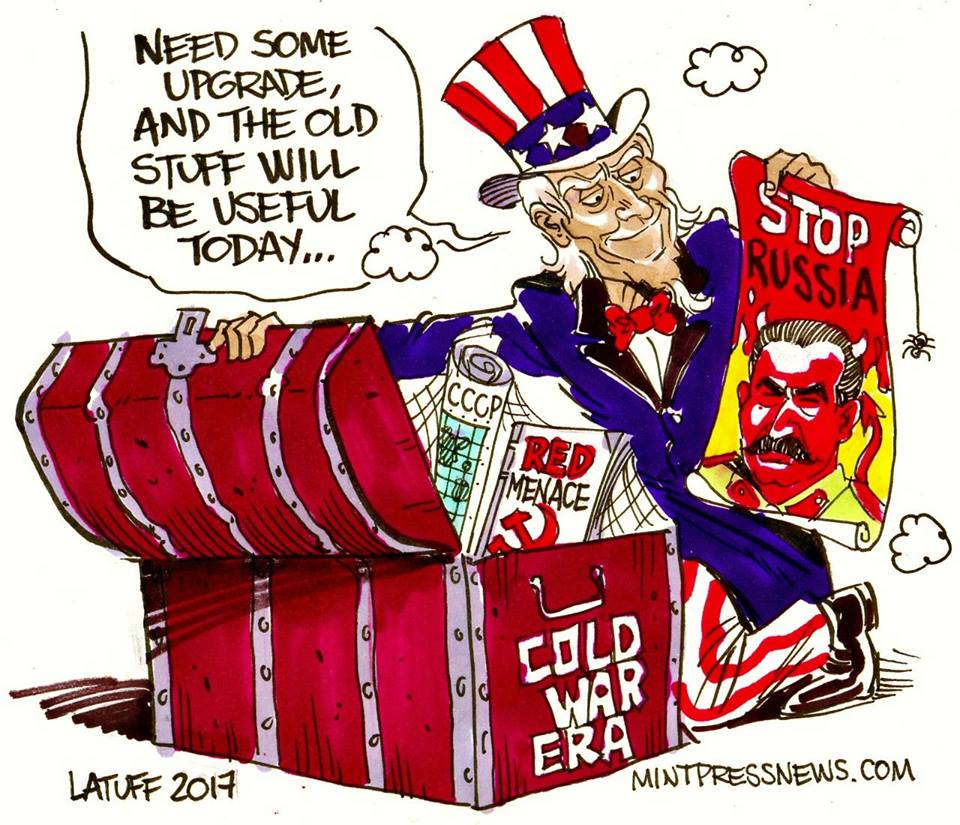 كاريكاتير للرسام البرازيلي كارلوس لطوف حول كيفية تبديل أمريكا لأعدائها