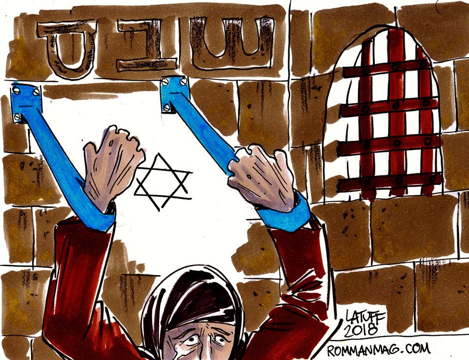 كاريكاتير للرسام البرازيلي كارلوس لطوف حول الأسيرة الفلسطينية إسراء جعابيص