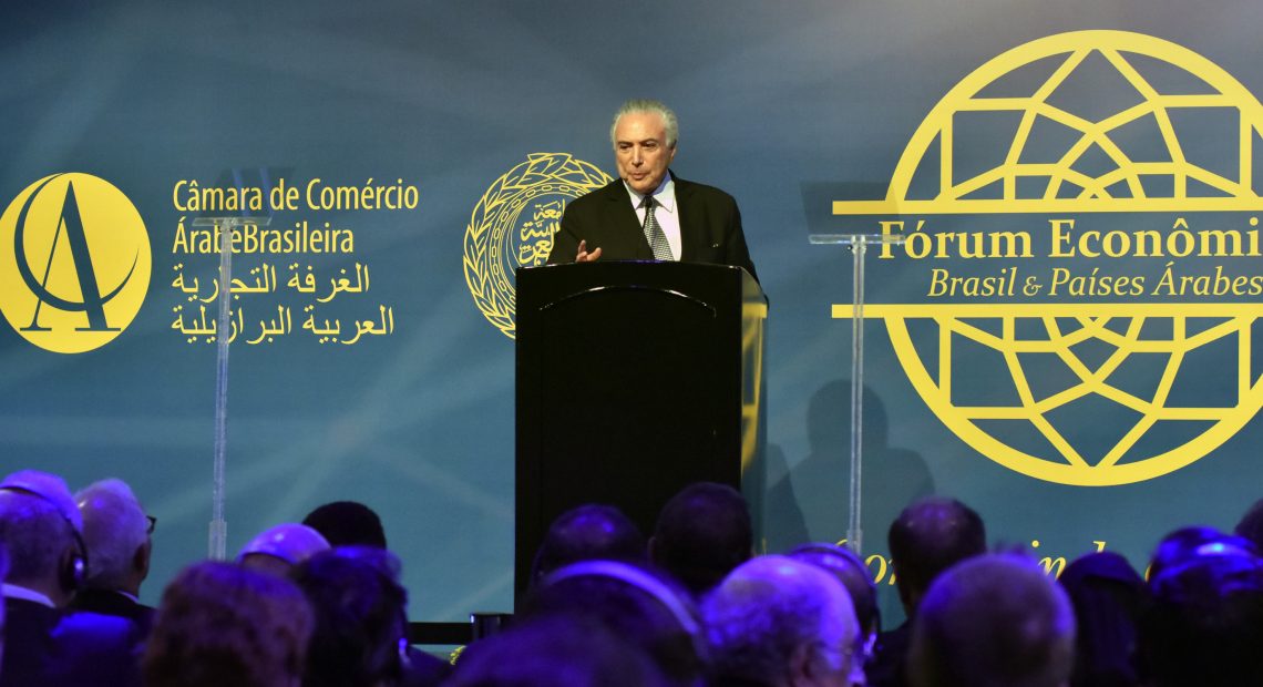 حضر الرئيس البرازيلي ميشيل تامر المنتدى الاقتصادي العربي البرازيلي الذي انقعد أمس في ساو باولو تحت عنوان "بناء المستقبل"، ورعته الغرفة التجارية العربية البرازيلية بالتعاون مع جامعة الدول العربية واتحاد الغرف التجارية العربية وهيئات أخرى. و. وأضاف:" لدينا علاقات إنسانية متينة وحوار سياسي متجدد وعلاقات اقتصادية قوية".