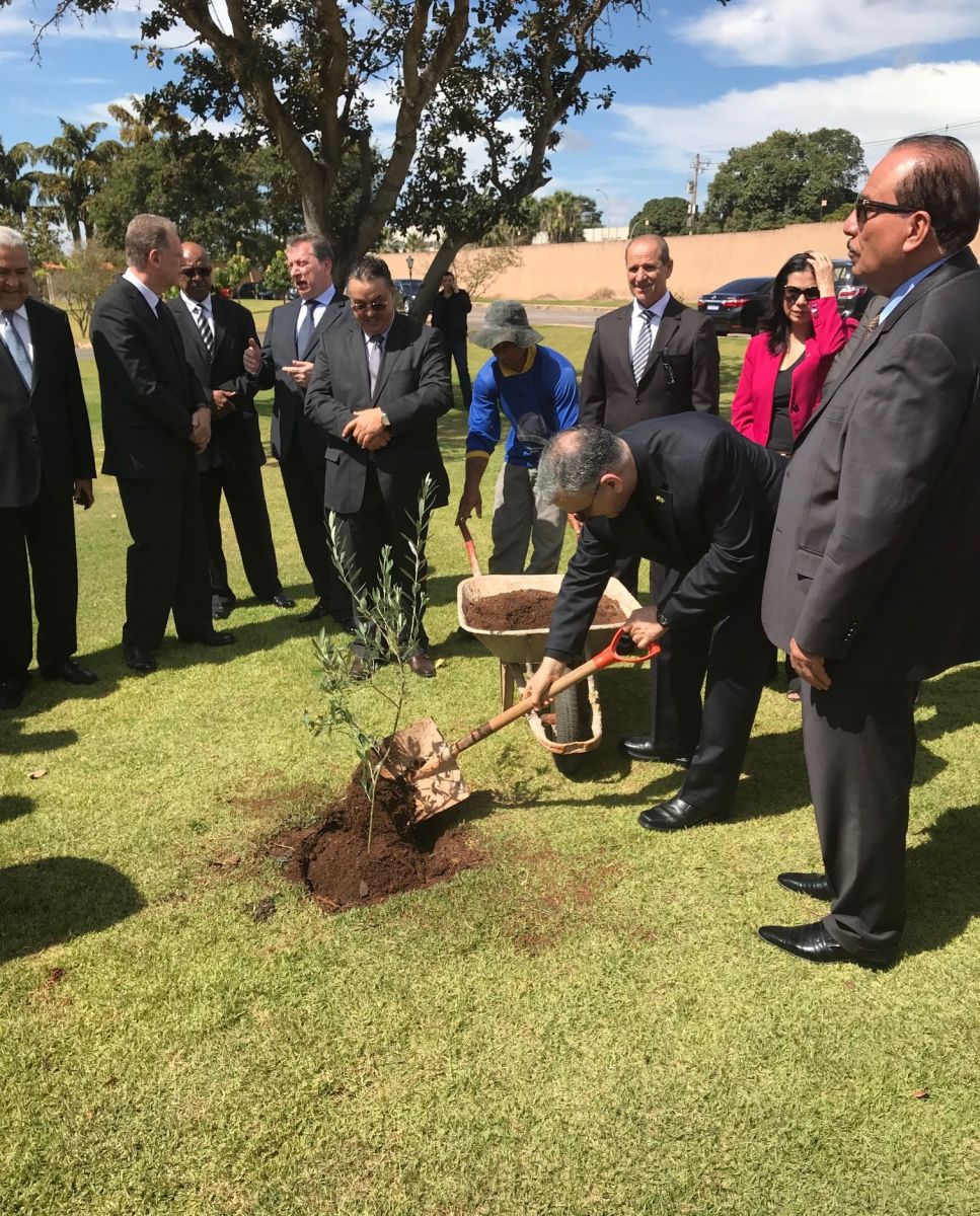وفي ختام الحفل تم زراعة شجرة زيتون في حديقة مقر السفارة الفلسطينية.