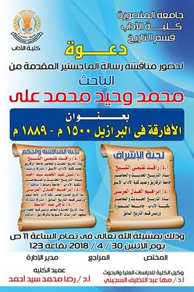 صدر مؤخراً بحث بعنوان «الأفارقة في البرازيل 1500-1889» عن جامعة المنصورة/ مصر. والبحث تم إعداده لنيل درجة الماجستير في التاريخ، وأعده الباحث "محمد وحيد محمد علي" تحت إشراف كل من الدكتور "رأفت الشيخ" أستاذ التاريخ الحديث والمعاصر في «جامعة الزقازيق» والدكتور "إبراهيم العدل المرسي" أستاذ التاريخ الحديث والمعاصر في «جامعة المنصورة».