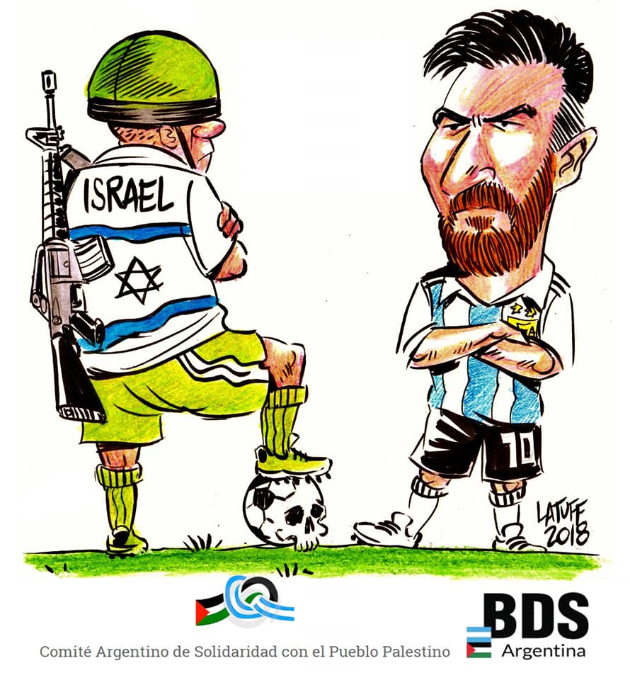 كاريكاتير للرسام البرازيلي كارلوس لطوف حول إلغاء المباراة الودية بين منتخب الأرجنتين والمنتخب "الإسرائيلي".