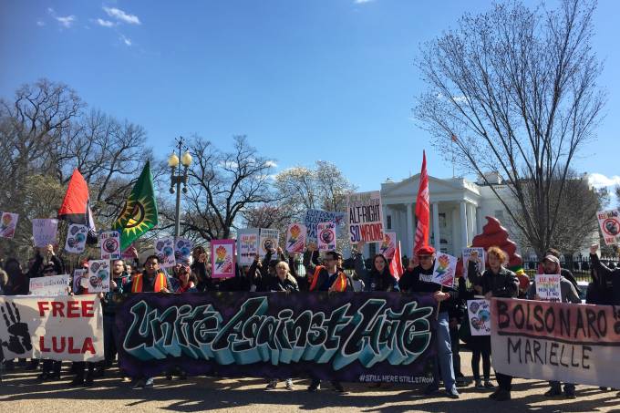 على صعيد آخر ذكرت عدة مواقع برازيلية أن عشراتٍ من المحتجين تظاهروا أمام البيت الأبيض عشية وصول بولسونارو مستنكرين وصوله إلى العاصمة الأمريكية. من الاحتجاجات ضد زيارة بولسونارو أمام البيت الأبيض