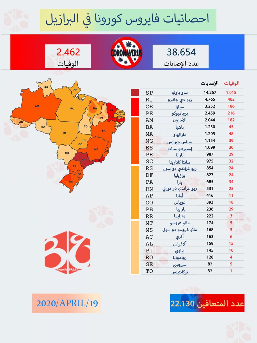 في ظل هذا التصاعد الكبير بالأعداد يقوم الرئيس البرازيلي جايير بولسنارو بأخذ إجراءات تحد من الحجر المنزلي و التباعد الاجتماعي ويقول: (أنا لا أقوم بشيء عن عبث فأنا أعرف ما افعل).