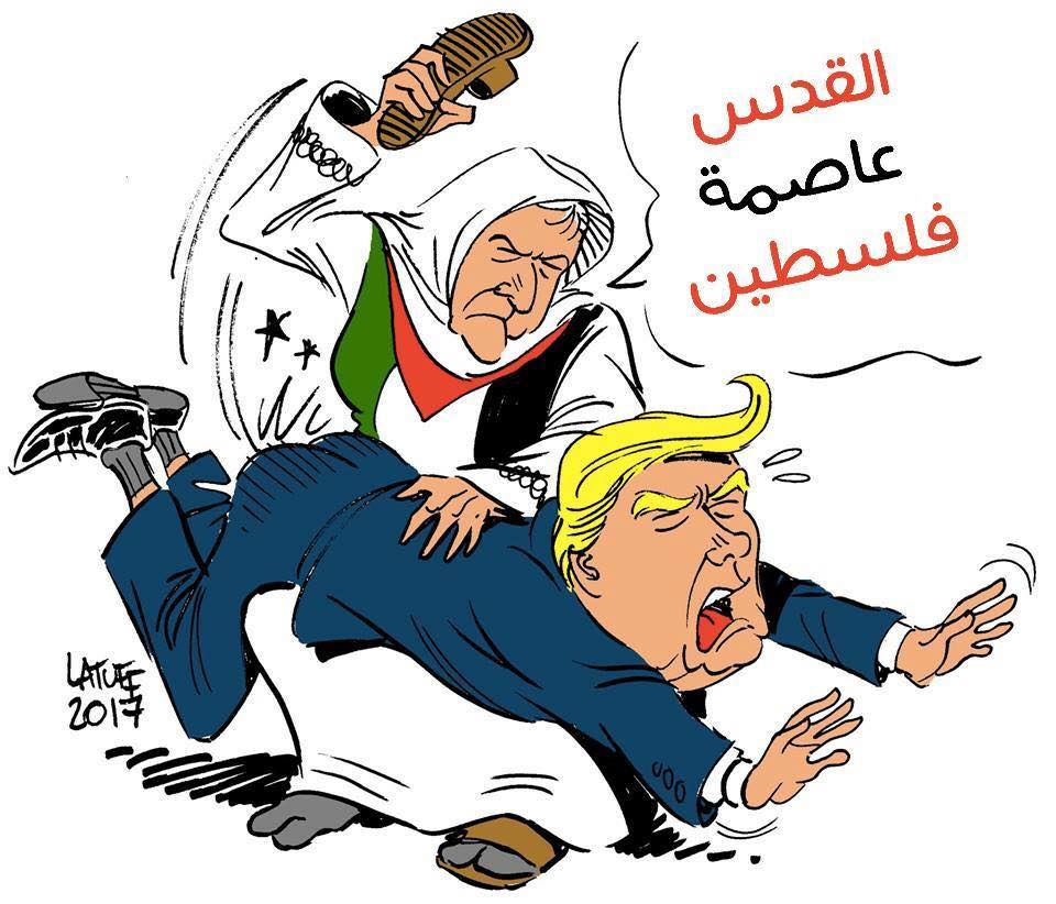كاريكاتير للرسام البرازيلي كارلوس لطوف يسخر من اعتراف الرئيس ترامب بالقدس عاصمة لـ "إسرائيل"