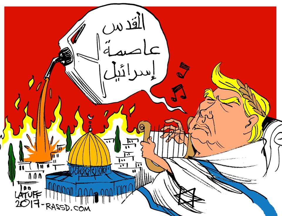 كاريكاتير للرسام البرازيلي كارلوس لطوف: قرار ترامب يشعل المنطقة