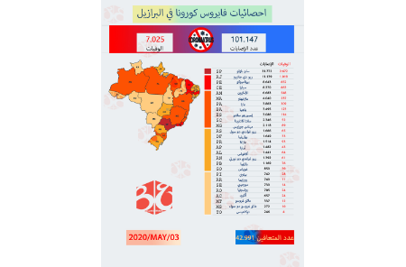 تسجل البرازيل 4588 إصابة جديدة و 275 حالة وفاة بفيروس كورونا اليوم 3مايو/أيار الجاري