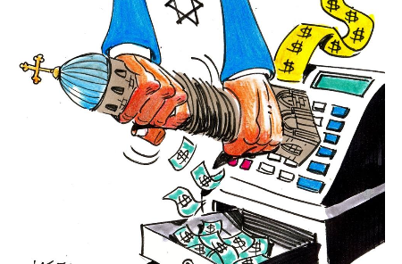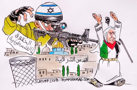 كاريكاتير للرسام البرازيلي كارلوس لطوف حول مواقف الاحتلال ضد كنيسة القيامة
