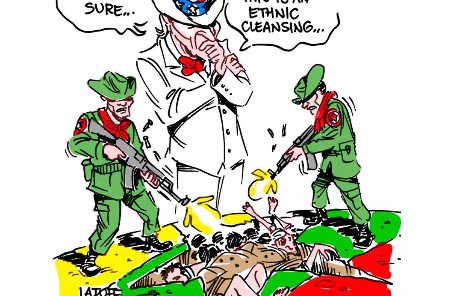 كاريكاتير للرسام البرازيلي كارلوس لطوف حول كيفية تبديل أمريكا لأعدائها