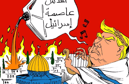 كاريكاتير للرسام البرازيلي كارلوس لطوف يسخر من اعتراف الرئيس ترامب بالقدس عاصمة لـ "إسرائيل"