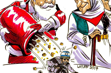 كاريكاتير للرسام البرازيلي كارلوس لطوف حول هدية عيد الميلاد الفلسطيني