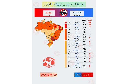 في البرازيل أكثر من 202 ألف إصابة بفيروس كورونا و انخفاض في نسبة المتعافين